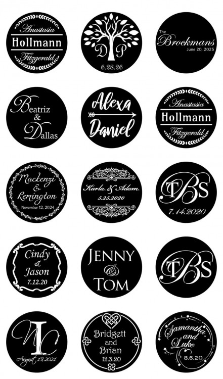 - Customizable designs: Display your wedding date, initials, company name, logo, or tagline
