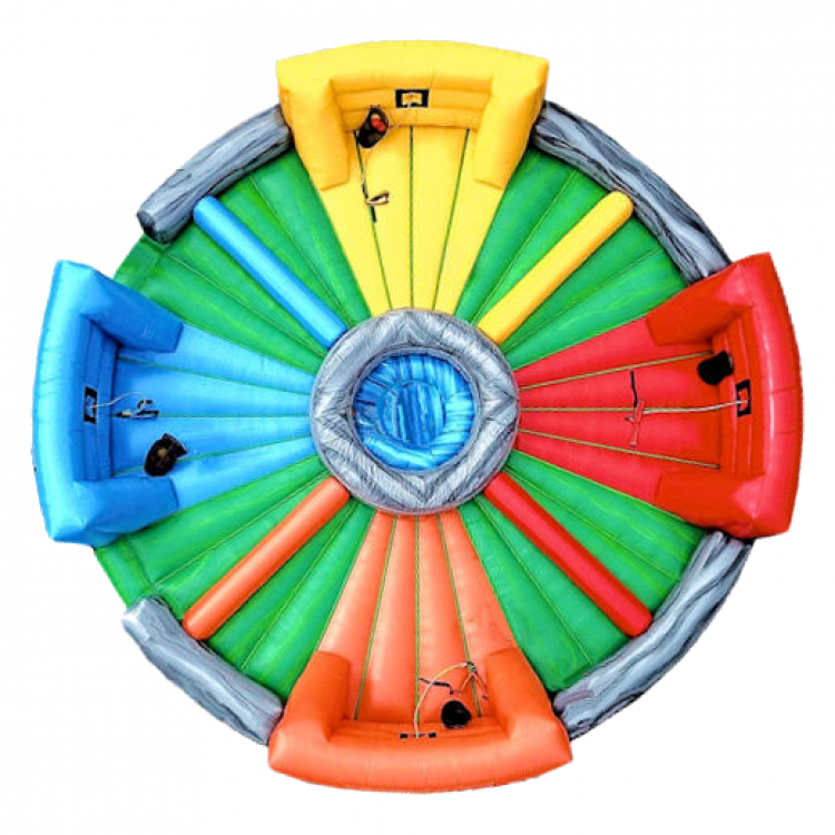 - Up to 4 players start at their designated walls, each attached to a bungee cord.