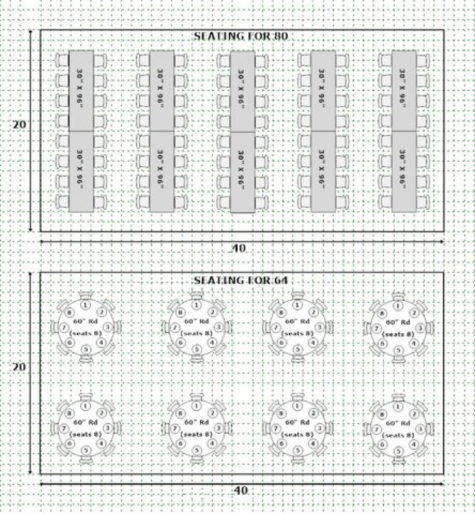 • Capacious Layout: The 20x40 tent comfortably accommodates various seating arrangements: up to 64 guests at 8 round tables, or 80 guests at 8 eight-foot rectangular tables. This flexibility makes it ideal for both formal dining and casual seating setups. Tables and chairs are not included but can be added.